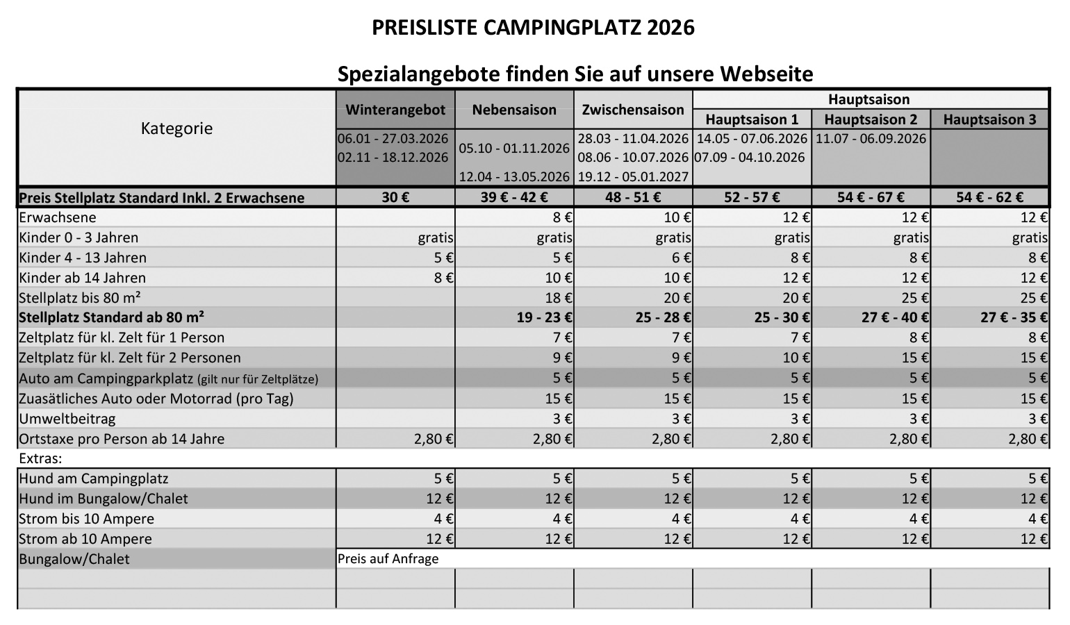 - Free internet access throughout the campsite via fast Wi-Fi